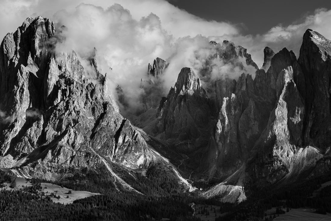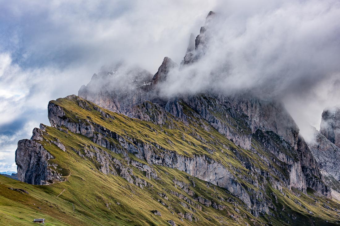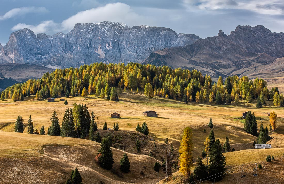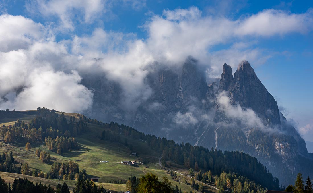 The Dolomites region of Italy is the southern range of the Alps near the border with Austria. These photos are from the Val Gardena area which has some marvelous formations and spectacular alpine meadows, such as the Alpe di Siusi, the largest alpine meadow in Europe. It’s known for skiing in the winter, hiking in other seasons and as a beautiful place to photograph.