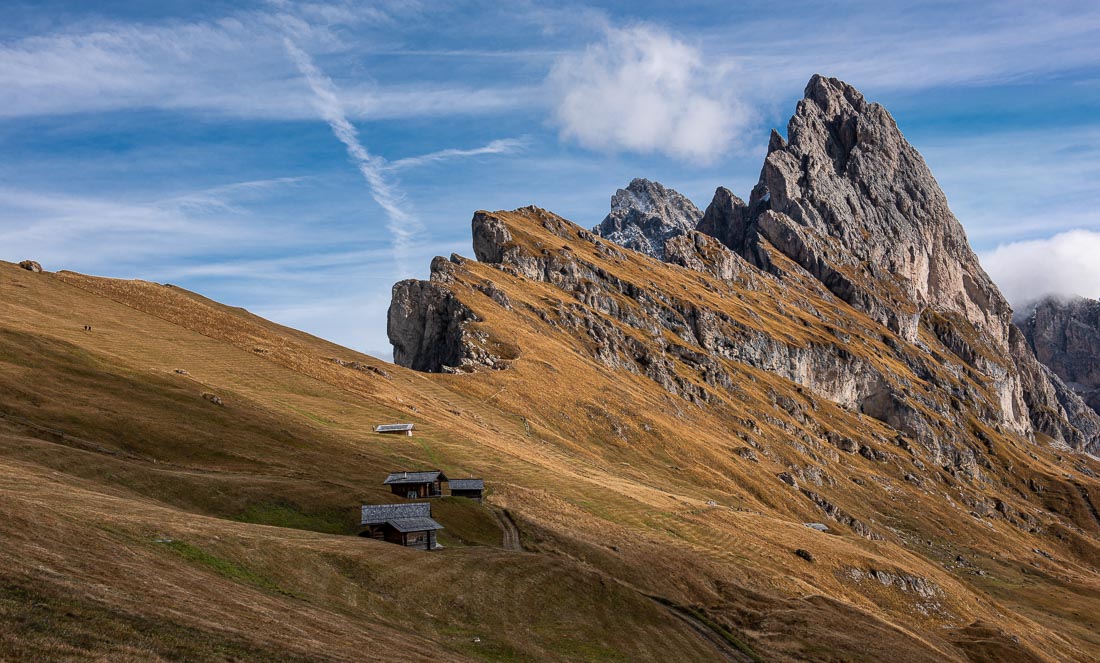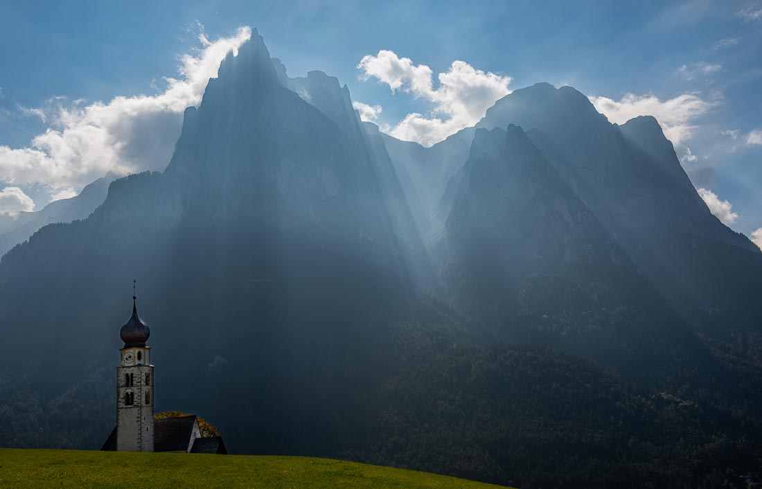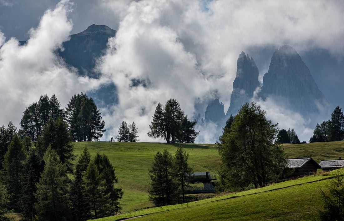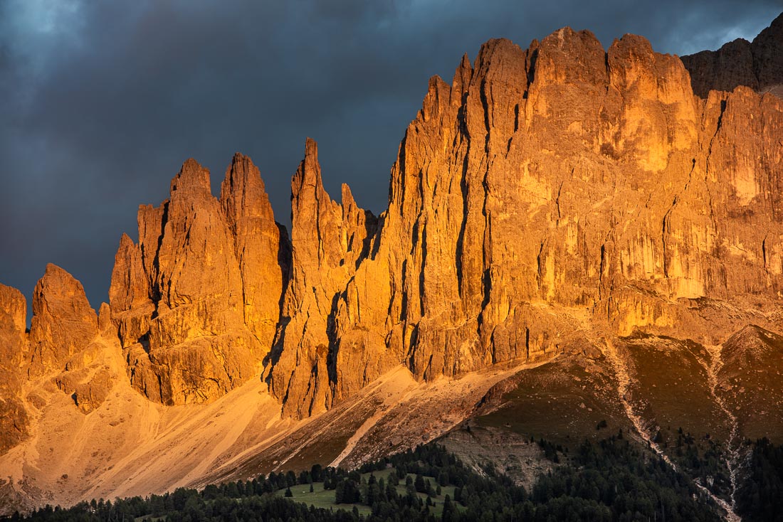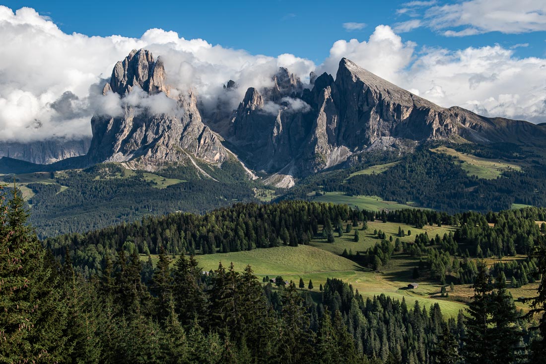 The Dolomites region of Italy is the southern range of the Alps near the border with Austria. These photos are from the Val Gardena area which has some marvelous formations and spectacular alpine meadows, such as the Alpe di Siusi, the largest alpine meadow in Europe. It’s known for skiing in the winter, hiking in other seasons and as a beautiful place to photograph.