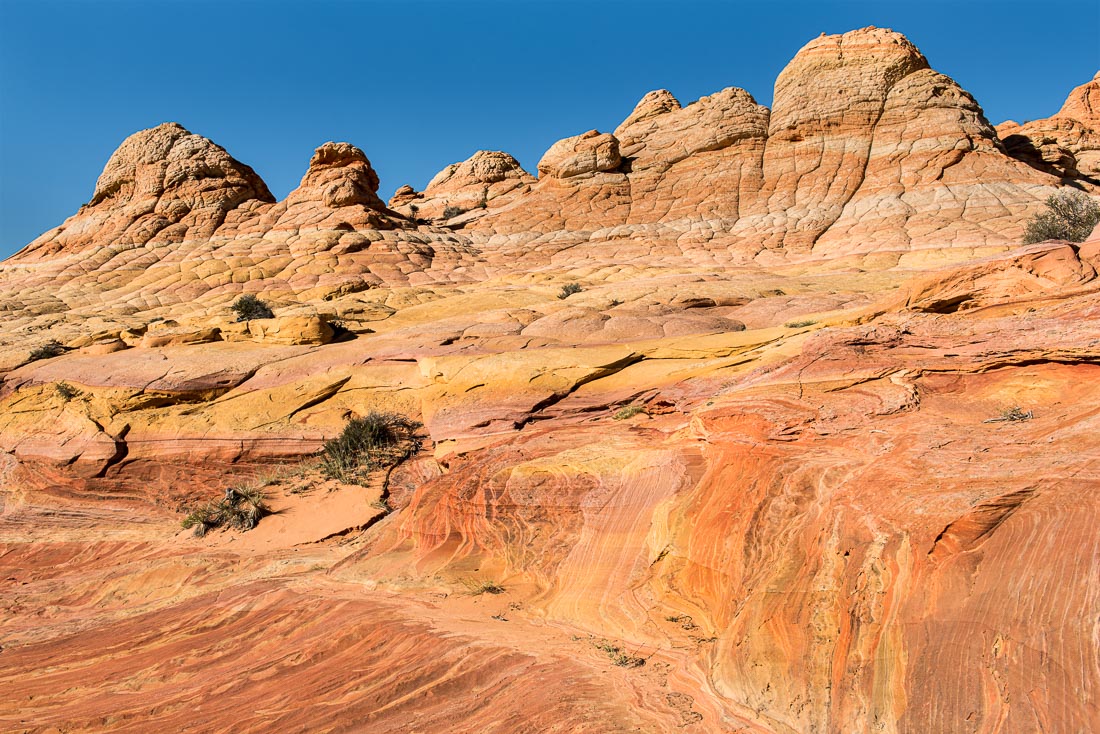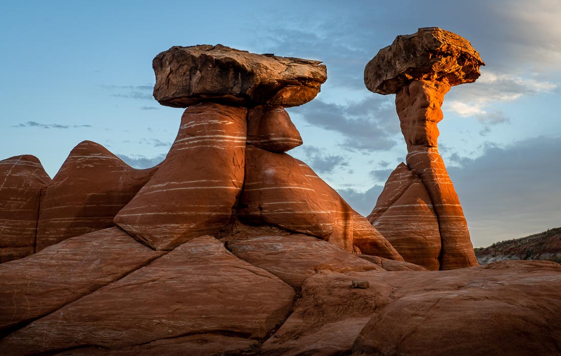 The Grand Staircase-Escalante is a series of sedimentary rock layers stepping up gradually from the North Rim of the Grand Canyon to Bryce Canyon. Vermillion Cliffs is within this area. It’s a very colorful area with exotic landscape formations such as Coyote Buttes and White Pocket. Just outside the protected areas, nearer to Page AZ are other fascinating areas.