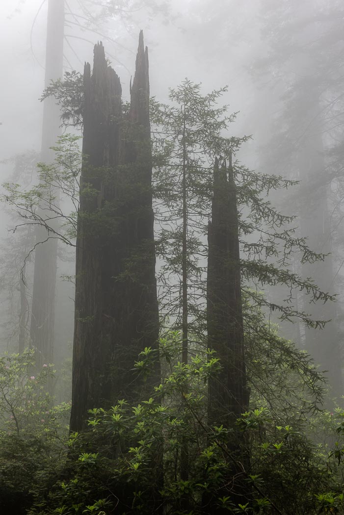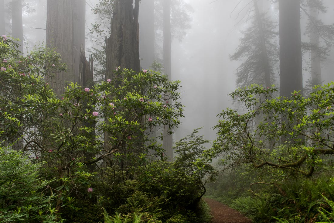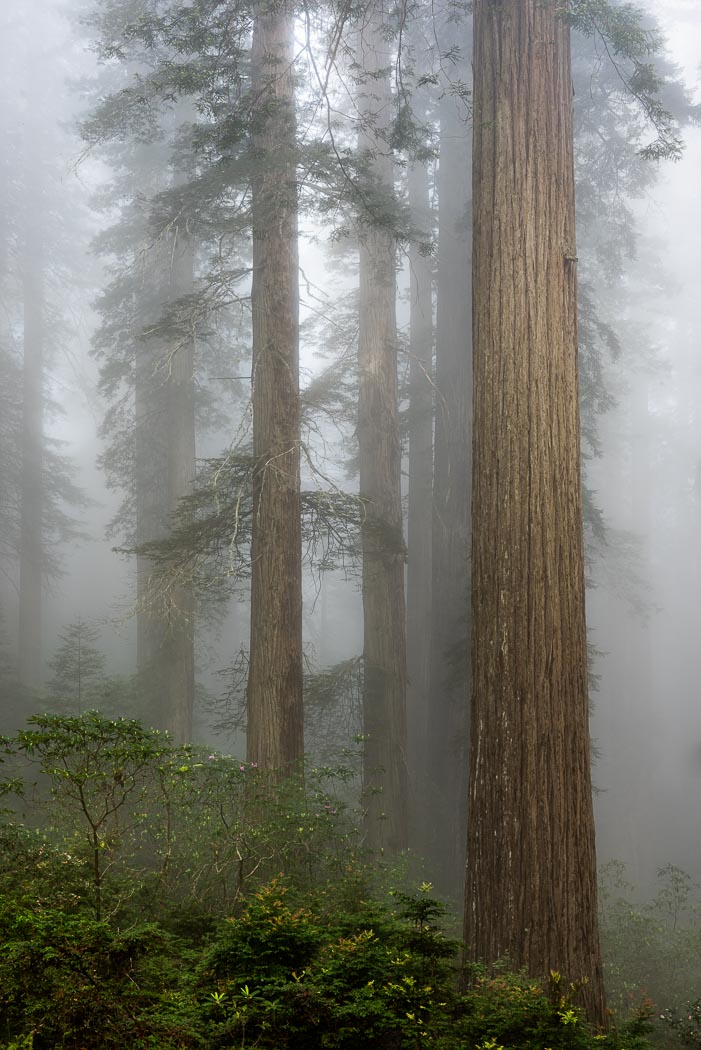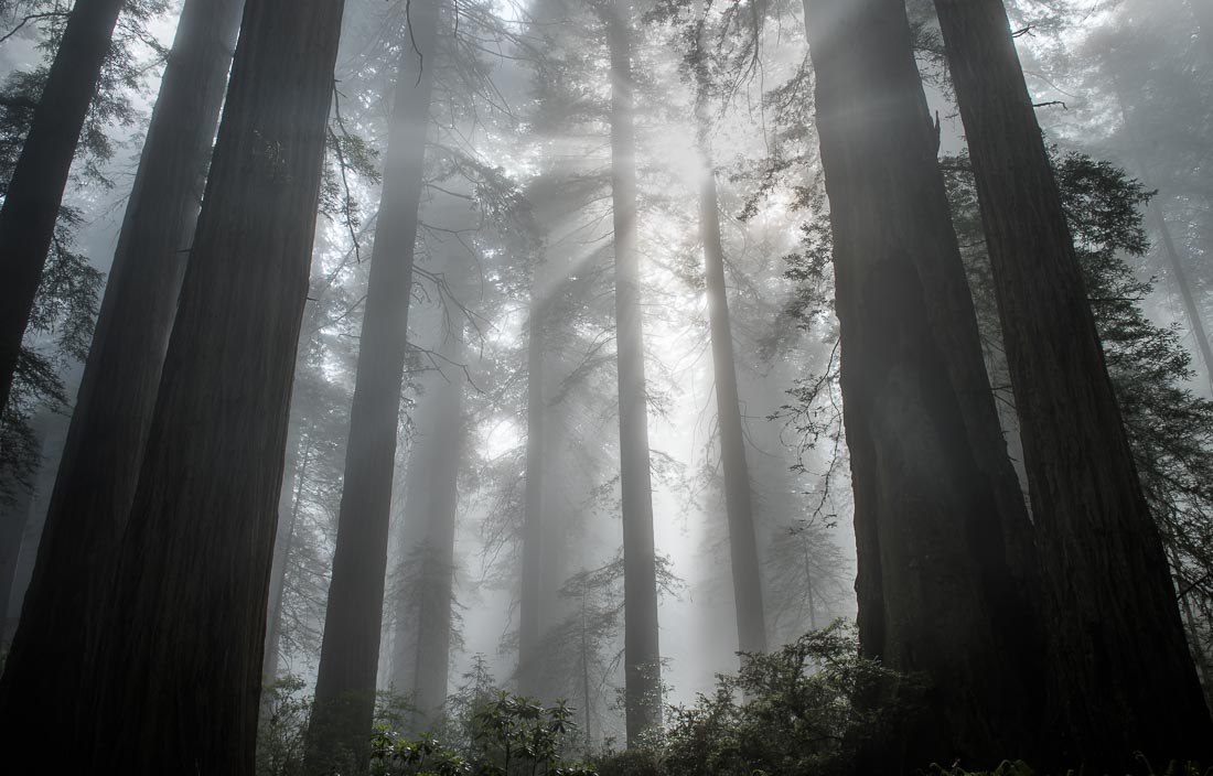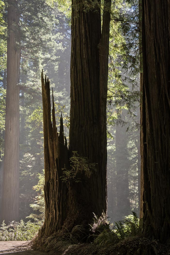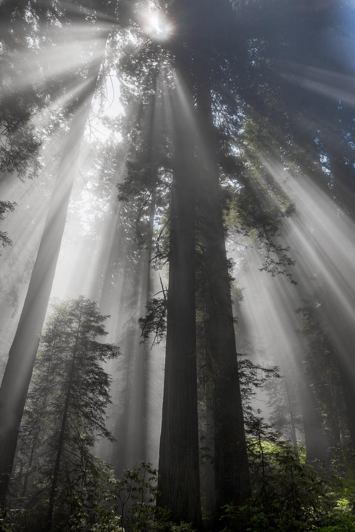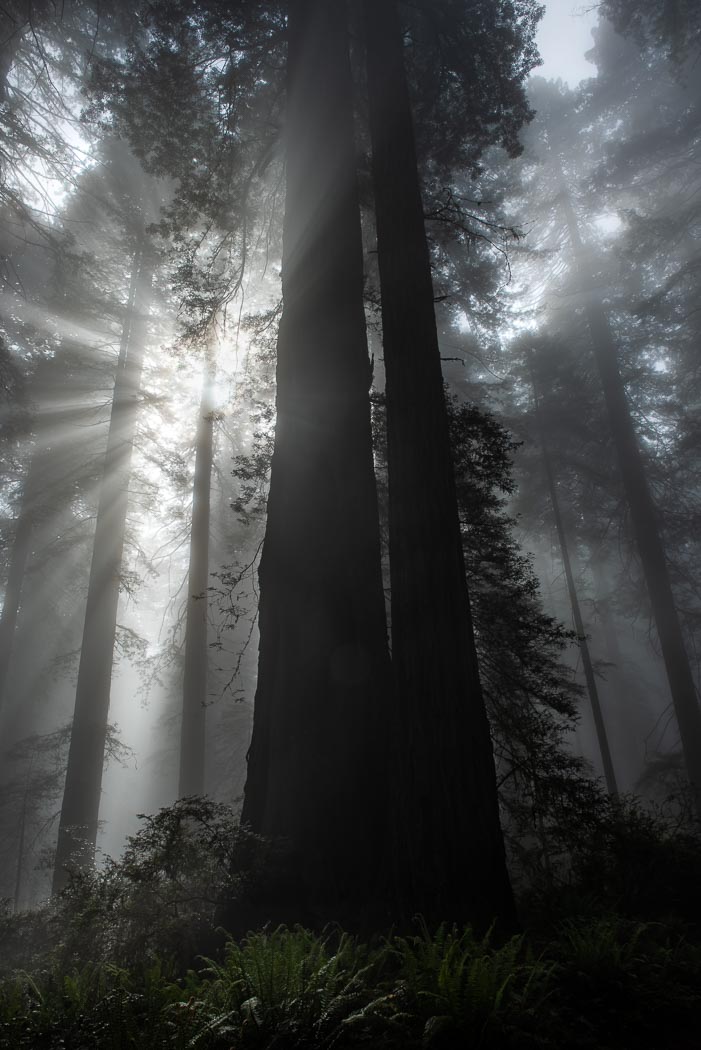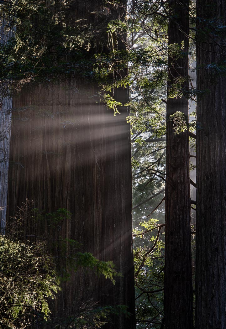 The redwood forests in Northern California are among the most spectacular forest areas anywhere. Magnificent trees reach hundreds of feet into the air, some so wide that it takes a dozen people to wrap their arms around them. I first encountered the redwoods in the Big Sur area. Those in the north are even more dramatic. And combined with the coastal fog and beams of light filtering through it can be quite otherworldly.